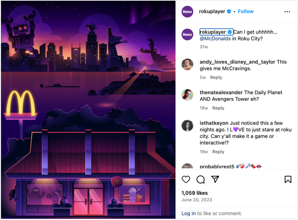 While it’s a nascent endeavor, it’s a sign that Roku is pioneering new ways to grow at a time when other streaming services are cutting costs to stem subscriber loss. Roku had a strong last quarter of 2023, growing total revenue 20% year-over-year and, for the first time, opened Roku City up to major brand advertisers like MaNel and McDonald’s, integrating those brands’ visuals into their now-iconic screensaver, presenting a new way to engage their audience.