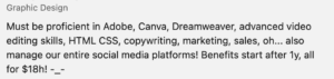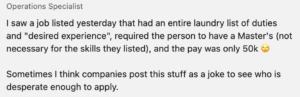 We want a unicorn with ALL the skills but NONE of the pay 🙂