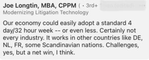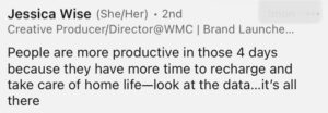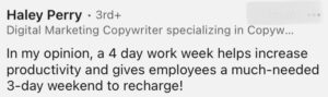 Yes. The answer is yes. Everyone wants a 4-Day work week. Well, everyone but the #grindneverstops crowd, but that’s their business, not ours. We want to have three days to refresh, recharge, and not dread going back to work for 5 days straight. Here’s what our LinkedIn audience had to say about the 4-day work week.